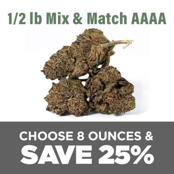 A little variety goes a long way. With the AAAA 1/2 LB Mix & Match, you get 8 different 28g strains for a total of 224 grams. It’s a great way to try multiple options without committing to a full 1/2 LB of just one.