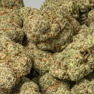 Alien Cookies is an evenly balanced hybrid (50% sativa/50% indica) strain created through a cross of the popular Alien Dawg X Girl Scout Cookies strains. This bud is incredibly rare to find, but totally worth it every time because of its flawless combination of its parents’ effects. The Alien Cookies high has a happy and relaxing nature powered by an average THC level of 29% or more that is mild upon first hit, but can prove to be debilitating if you risk any more. It hits you first with a happy lift that leaves you in a state of utter peace before catapulting you into a powerful couch-lock and a sedated hungry state that leaves you questioning if you should sleep or eat everything in your house. Many users report falling asleep as the high builds, especially if they are less experienced or took a few tokes. These effects make Alien Cookies ideal for treating conditions such as chronic pain, appetite loss, muscle spasms, insomnia, and chronic stress or anxiety. This bud has a surprisingly sweet vanilla flavor accented by pungent earth, and a strong aroma of pungent kush with a hint of sweet vanilla as the nugs are burned. Alien Cookies has lumpy leafy small bright neon green nugs with rich amber hairs and a thick frosty coating of amber colored tiny crystal trichomes.