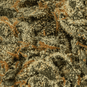 This bud has a sweet and fruity cherry berry flavor with hints of spicy peppery grapes upon exhale. The aroma is very similar, although earthier and sweeter overall. Alien Tits buds have fat hand-shaped bright neon green nugs with thin orange hairs and a coating of tiny frosty white crystal trichomes.