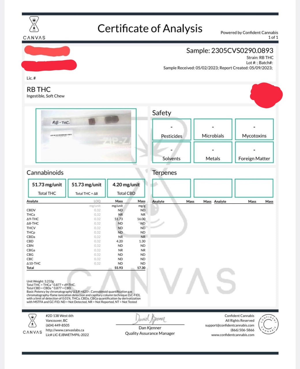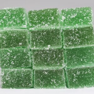 Ingredients: sugar, gelatin, THC Cannabis extract, organic coconut oil, citric acid, natural colouring, artificial flavouring