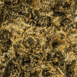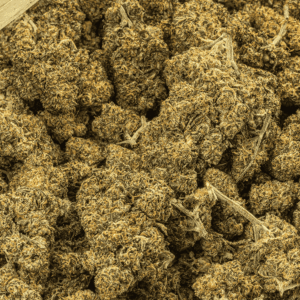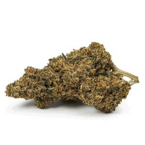 It’s a crossbreed of Black Domina, the source of its indica genes, and Amnesia Haze, a sativa. This strain is available in California and possibly the Pacific Northwest. It might also be found in Colorado, but elsewhere it’s scarce. Blackout OG has a taste that combines sage and spice, and an aroma of earth and spice. The bud has a spotted appearance, with flecks of brown and bright green under a shiny layer of trichomes. This strain is best used when treating anxiety, irritability, insomnia, or chronic pain. Dry mouth is possible, as are red eyes and mild paranoia.