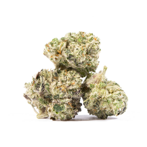 Blue Lobster is a slightly indica dominant hybrid strain (60% indica/40% sativa) created through crossing the delicious Apples N Bananas X Eye Candy strains. If you love a super mouthwatering flavor and a soaring, happy high with your medicine, look no further than Blue Lobster to give you everything that you need and so much more. This bud packs a sweet and sugary blueberry candy taste with hints of fresh, fruity apples and a punch of zesty, sour citrus. The aroma follows the same effect, with a citrusy lemon overtone accented by zesty Granny Smith apples and sweet blueberries. The Blue Lobster high will settle in quickly, filling you with a lifted sense of warming euphoria that gently wraps its way around your mind. You’ll find that you’re infused with a feeling of calm that soothes away mental aches and pains, allowing you freedom to finally think freely. Thanks to these blissful effects and its insanely high 22-25% average THC level, Blue Lobster is often said to be a great choice for very experienced patients who are looking for help with treating the symptoms of chronic stress or anxiety, PTSD, chronic pain and depression or mood swings. This bud has dense and super long, grape-shaped forest green nugs with rich amber undertones, super thin orange hairs and a frosty, blanketed coating of sparkling, amber-tinted white crystal trichomes.