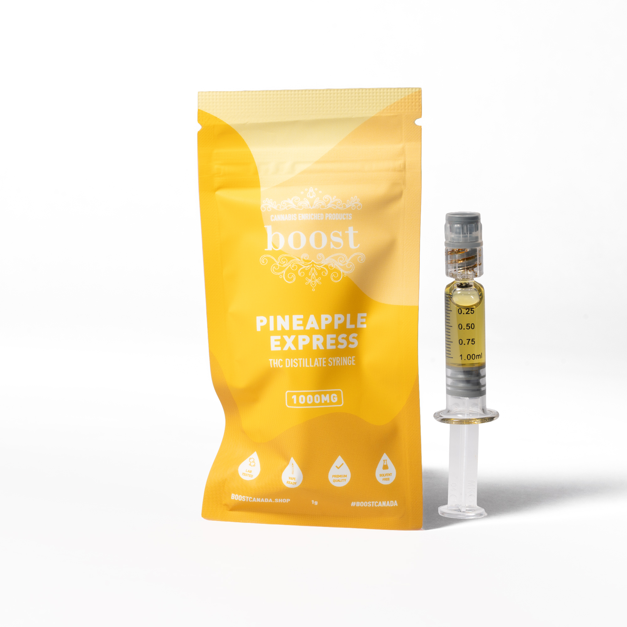 Boost THC Distillate Syringes are 1000mg Luer lock Glass syringes, containing high potency Delta 9 tetrahydrocannabinol.