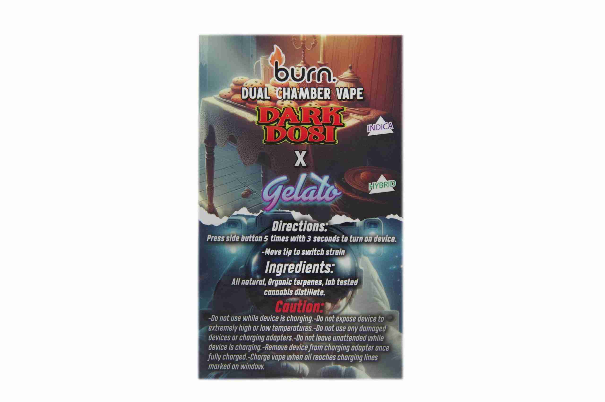 Elevate your vaping experience with the 6G Dual Chamber Vape, designed for those who appreciate variety. This innovative device features two separate chambers, each holding 3 grams of premium cannabis distillate, allowing you to effortlessly switch between two exceptional strains: Dark Dosi and Gelato.