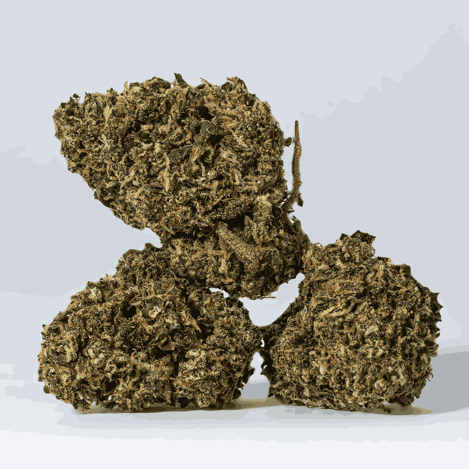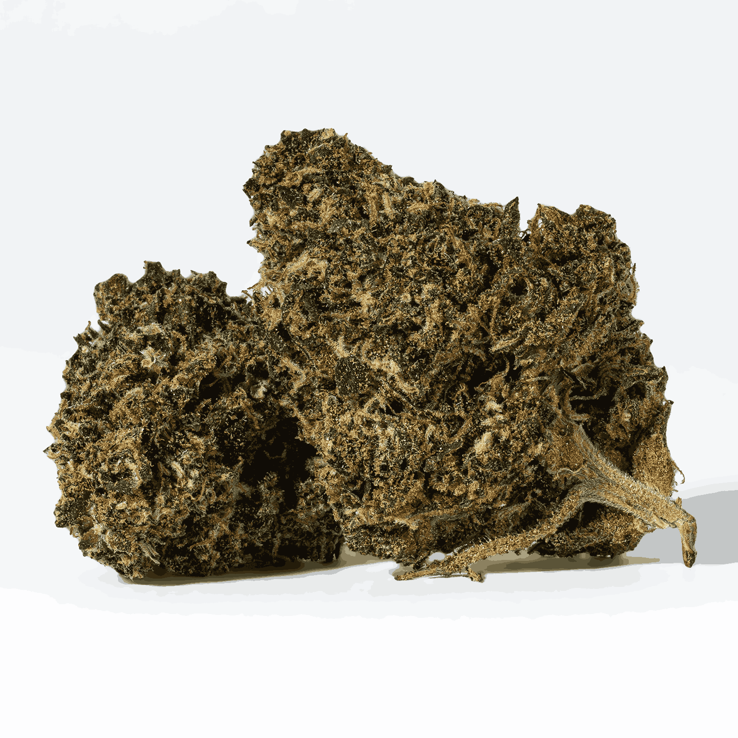 Dark Knight is an indica-dominant hybrid with a sativa/indica ratio of roughly 30:70. It’s a cross of Granddaddy Purps (GDP) and Purple Kush. The double-purple ancestry makes for a distinctly fruity aroma, with sweet Kush tones, while the flavor is similar. Noted for THC around 21%, this strain is about 0.8% CBD. The THC content varies, but specific numbers are unavailable. Some users report a strong body buzz with a happy mood that’s good for treating depression, insomnia, anxiety, and chronic pain. In either case, this can be a highly effective treatment for pediatric seizure disorders and other conditions that respond to CBD.