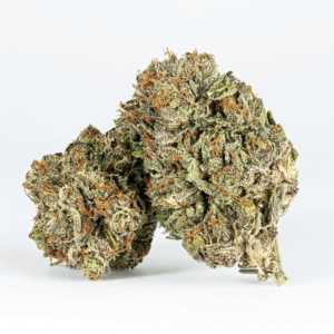 Famous for its gorgeous appearance and super potent high, Double Purple Afgooey is the perfect powerful indica for any discerning patient. This bud has eye-catching fat spade-shaped dark olive green nugs with deep purple undertones, thin orange hairs and a super frosty coating of chunky, deep purple-tinted white crystal trichomes topped with sweet, sticky resin. As each frosty little nugget is broken apart, aromas of sweet fruity grapes, pungent dank and heavily spicy hash are released, intensifying in potency as the nugs are burned away. The flavor is on the lighter side, with a spicy hash overtone accented by rich grape wine and a touch of earthiness. The Double Purple Afgooey high will wash over you quickly, taking on your mind with a quickly soaring lifted effect. You’ll feel giddy and giggly with a boost of sociability that has you outgoing and ready to get laughing or chatting with anyone around you. A super calming physical high comes next, sinking into your body and leaving you feeling totally relaxed from head to toe. With these effects and its high 26-28% average THC level, Double Purple Afgooey is said to be perfect for treating depression, insomnia, chronic stress, chronic pain, nausea and ADD or ADHD.