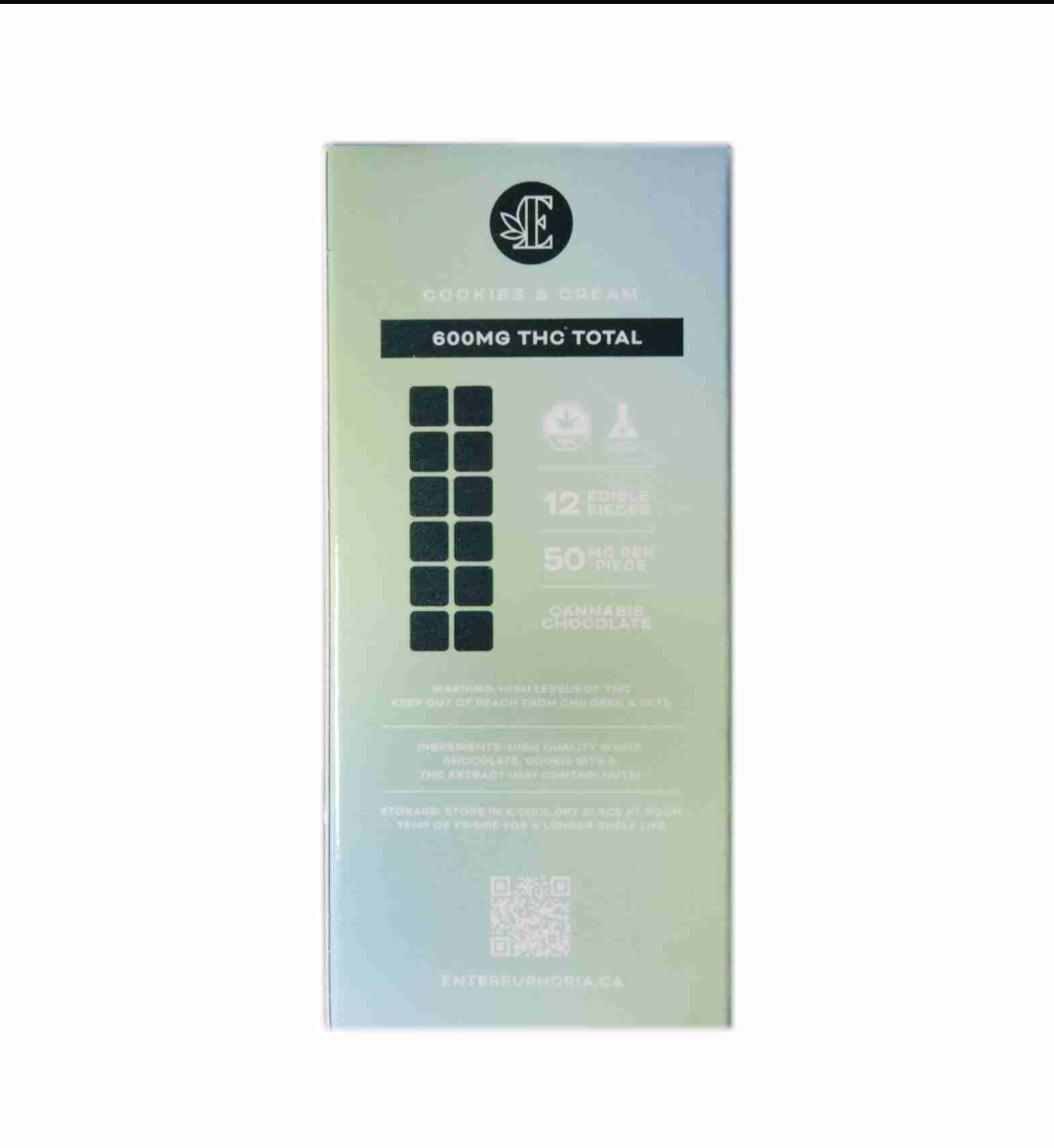 Euphoria Cannabis THC Chocolate 600mg – Cookies and Cream