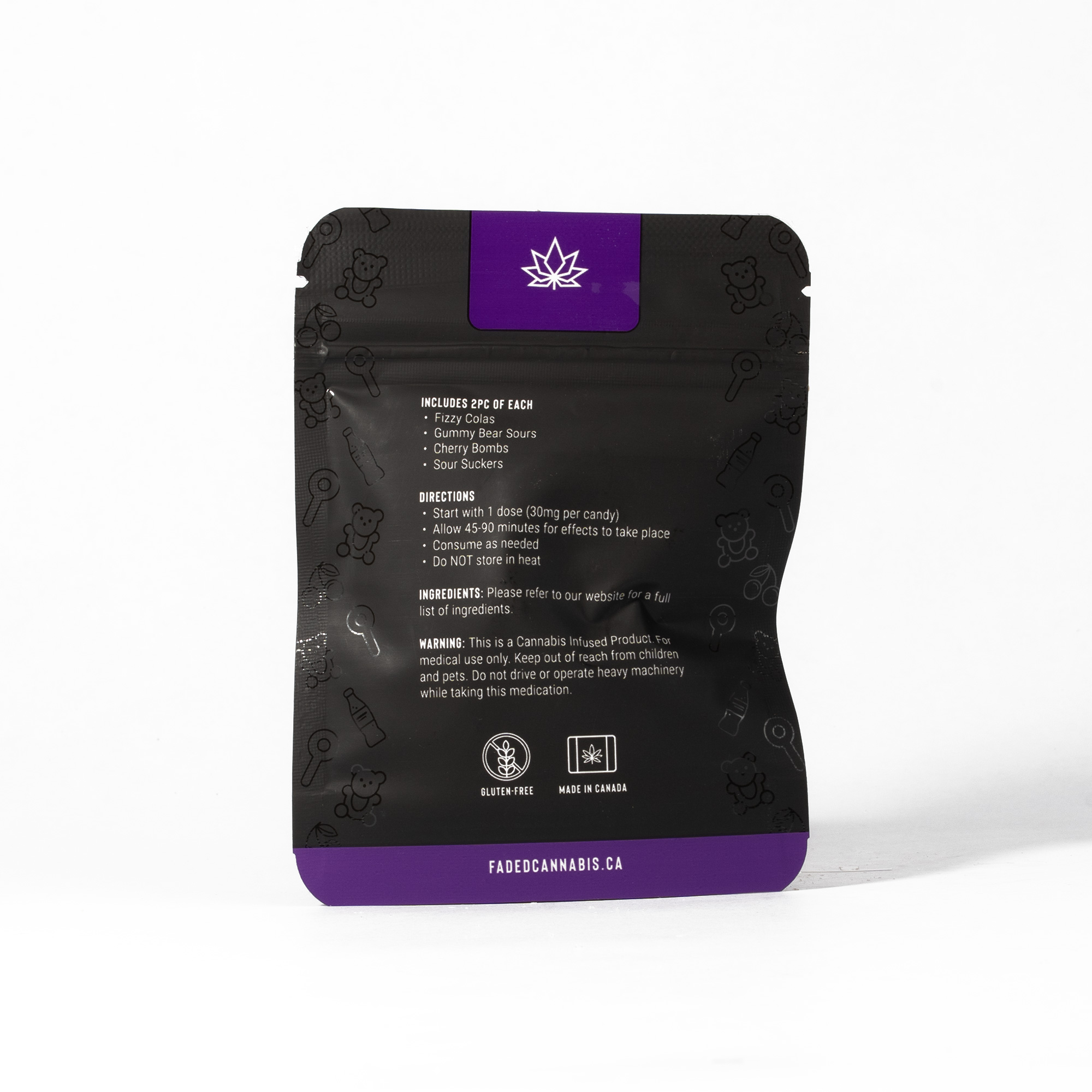 Our Faded Cannabis Edibles 240mg THC gummies come with 8 pieces that contains 30mg of THC per piece. The Fruit Packs and Variety Packs allow you to have a little bit of everything from our whole selection of gummies. Relieve yourself of worries and aches by consuming a couple of these.