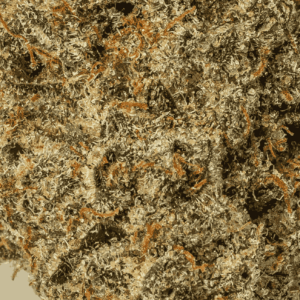 This bud has a sweet fruity berry bubblegum flavor with a rich earthy diesel exhale. The aroma follows the same profile with a hint of pungent herbs that’s added as the nugs are broken apart and burned. Flintstones buds have long pepper-shaped minty green nugs with dark red-orange hairs and a coating of rich frosty thick white crystal trichomes.