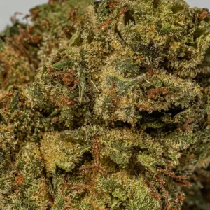 Galactic Gas is a rare slightly indica dominant hybrid strain (60% indica/40% sativa) created through crossing the classic Gelato #45 X Gushers strains. Even with parents like these, Galactic Gas has a surprisingly pungent and skunky aroma of heavy diesel and gas that will clear any room. The flavor is remarkably similar, with a spicy skunky overtone that’s accented by heavy pungent earth and herbs. The Galactic Gas high is just as intoxicating as its scent, with calming yet creative effects that will have your mind soaring high while your body settles into a pleasant heaviness. You’ll feel a sense of happiness wash over you a few minutes after your final toke, easing away any negative or racing thoughts almost immediately. A light physical tingle comes next, building in intensity before dropping your limbs into a super heavy state that leaves you pretty couch-locked and immovable. With these sleepy effects and its high 23-27% average THC level, Galactic Gas is often said to be perfect for treating conditions such as chronic pain, insomnia, muscle spasms or cramps, spasticity and arthritis. This bud has small rounded colorful emerald green nugs with deep purple undertones, bright yellow-orange hairs and a frosty thick coating of golden amber crystal trichomes.