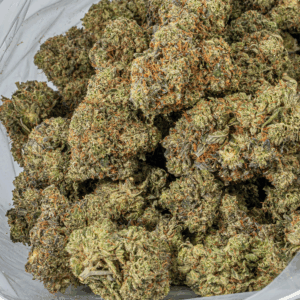 If you love Gorilla Glue, you’ll be head over heels for Pink Gorilla. This bud packs the best of its parent strains and more, with immediate hard-hitting effects that will glue your body to the couch and let your mind fly free. You’ll feel a fast-hitting sense of focused euphoria, getting your mind out of any negative moods or racing thoughts and into a state of what can only be described as mental ecstasy. As your mind settles into this lifted state, a sense of relaxation will creep its way throughout your body, growing heavier and heavier until your hopelessly glued to the couch, immovable for hours on end. With these heavy effects and its high 24-26% average THC level, Pink Gorilla is often chosen to treat chronic pain, arthritis, cramps or muscle spasms and migraines or headaches. This bud has a sweet and spicy blueberry flavor with a punch of sour chemicals upon exhale. The aroma is similar, although even more pungent and heavy with a fruity chemical overtone to it. Pink Gorilla buds have long spade-shaped bright neon green nugs with dark orange hairs, pink undertones and a thick frosty coating of pink-tinted white crystal trichomes.