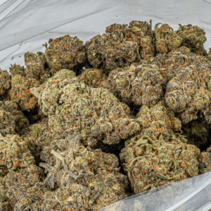This powerhouse brings on the head-melting effects with a super potent 28% average THC level. The high starts with a super strong rush of euphoric energy that barrels through your mind, leaving you totally sedated and unfocused but totally blissful. As your mind settles into oblivion, your body will start to follow suit, leaving you totally relaxed and slightly sedated. As your physical form drops off into a deeper sedation, you’ll become totally couch-locked and stoned, immovable for hours and hours on end. Thanks to these effects and its super high THC level, Gunk Panda is often chosen to treat conditions such as depression, insomnia, chronic anxiety or stress, chronic fatigue, and chronic pain. This bud has a heavy skunky pungent earthy flavor with a spicy fruity exhale. The aroma is super heavy and dank with a pungent fruity earthy overtone that fills any room with its crazy powerful stench. Gunk Panda buds have fluffy dense olive green nugs with purple undertones, dark amber hairs, and a coating of chunky matching crystal trichomes.