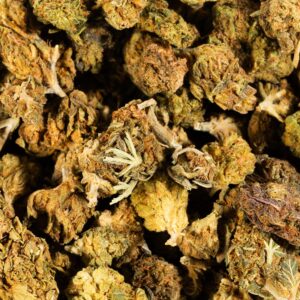 The Lagoon high is just as delicious, with a relaxing and calming overtone that hits both mind and body. You’ll feel a subtle lift at the start of the high that works its way into your brain, filling you with a lifted euphoria and an influx of sociability. As you easily carry on conversations with those around you, your body will begin to settle into a deeply relaxing physical state that has you kicked back and pretty immovable as your mind fades away into vibrant psychedelic visions. Thanks to these effects and its high 15-19% THC level and 0.1% CBD level, Lagoon is often chosen to treat conditions such as chronic pain, depression, insomnia, chronic stress and appetite loss or nausea. This bud has long popcorn-shaped bright neon green nugs with thin orange hairs and a coating of tiny golden amber crystal trichomes.