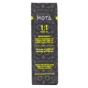 Medication doesn’t get much simpler than Mota’s high quality tinctures with consistent, pure and precisely specified THC and CBD. Mota tinctures are formulated with organic grape seed oil and infused with 500mg of THC and 500mg of CBD, a perfect blend of two primary cannabinoids to bring relief from a variety of symptoms.