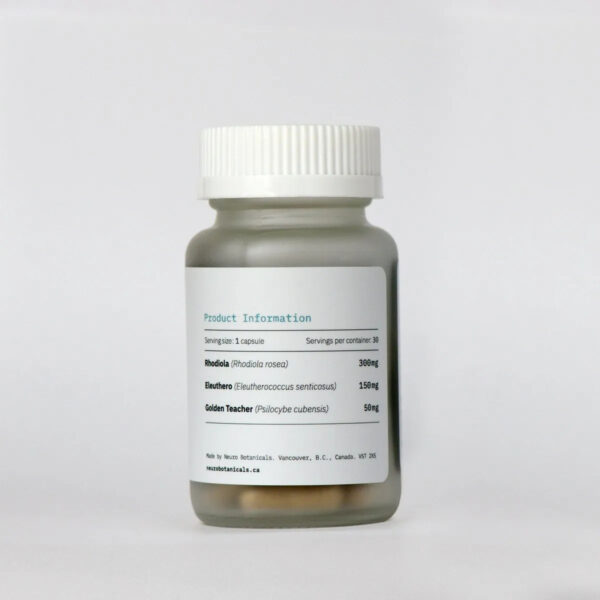 Neuro Botanicals Adapt microdose capsules are thoughtfully formulated to help you stay grounded and energized while navigating life’s daily stressors. Each vegan capsule combines Golden Teacher psilocybin mushrooms with two powerhouse adaptogens, Rhodiola rosea and Eleuthero. These herbs have long been valued for supporting adrenal health, enhancing energy, and helping the body adapt to physical, emotional, and environmental challenges.