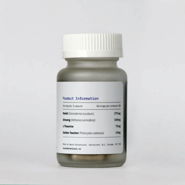 Neuro Botanicals Calm is a microdose blend crafted to help you stay grounded and relaxed, even when life gets overwhelming. Each vegan capsule combines Golden Teacher psilocybin mushrooms with a trio of calming botanicals-Reishi, Ashwagandha, and L-Theanine-for a synergistic formula that supports both emotional balance and mental clarity.
