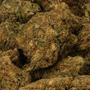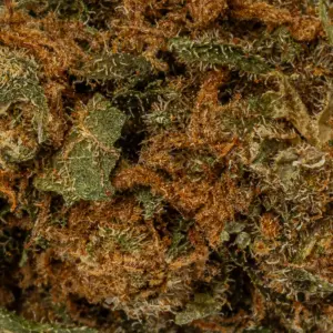 Royal Kush buds have small to medium-sized light minty green lumpy popcorn-shaped nugs with forest green undertones, sparse fiery orange hairs, and a sandy fine frosty layer of white crystal trichomes. This bud has a taste and aroma of sweet earthy skunk with a savory herbal aftertaste that lingers for hours after you finish smoking.