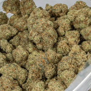 Looking for the perfect hybrid to add to your arsenal? Secret Weapon might just be it. This bud packs a super relaxing and well-balanced high that hits both mind and body with a high level of potency thanks to its insanely high 24-26% average THC level. The Secret Weapon high starts with a rush of tingly cerebral effects, filling your mind with lifted euphoria without causing an increase in euphoria or anxiety. As your mind lifts higher and higher, your body will begin to settle into a deeply relaxing physical state that keeps you anchored to the world below as your mind flies higher and higher. With these effects and its super high THC level, Secret Weapon is often chosen to treat those suffering from conditions such as chronic pain, appetite loss or nausea, depression, and migraines or headaches. This bud has a sweet fruity pine flavor with a lightly spicy earthy exhale. The aroma is of earth and fruits with a creamy herbal overtone that quickly turns sour and pungent as the nugs are broken apart and burned. Secret Weapon buds have small dense rounded olive green nugs with lots of thin amber hairs and a frosty coating of tiny bright white crystal trichomes.