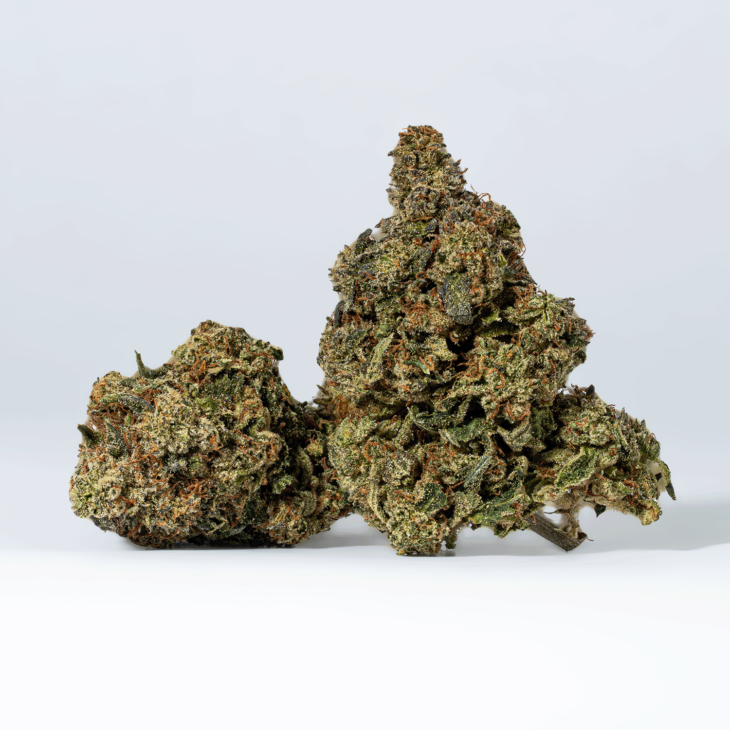 Like the name suggests, Shut Eye OG is the perfect bud for helping you get to sleep when it just won’t seem to come. The high starts with a deeply relaxing state that washes over your body in warming waves, lulling you into a deeply couch-locked state that fills your physical being with a sense of deep calm and ease. As your body settles, your mind will begin to follow suit, leading you to doze off, eventually passing out for hours and hours on end. With these potent effects and its high 24-26% average THC level, Shut Eye OG is often chosen to treat those suffering from conditions such as insomnia, chronic stress, depression, and chronic pain. This bud has a sweet and sour citrus flavor with a hint of sharp lemon and earth upon exhale. The aroma is of sharp earthy citrus with a sharp chemical overtone and a rich diesel effect that’s released as the nugs are burned. Shut Eye OG buds have dense grape-shaped dark forest green nugs with dark amber undertones, rich hairs, and a coating of sparkling deep amber crystal trichomes.