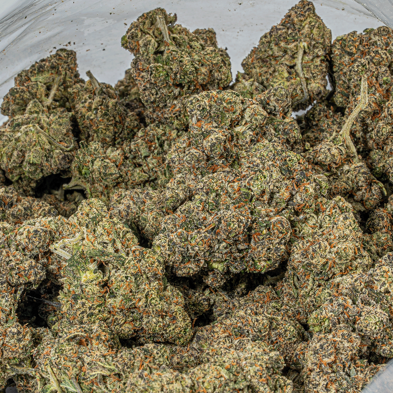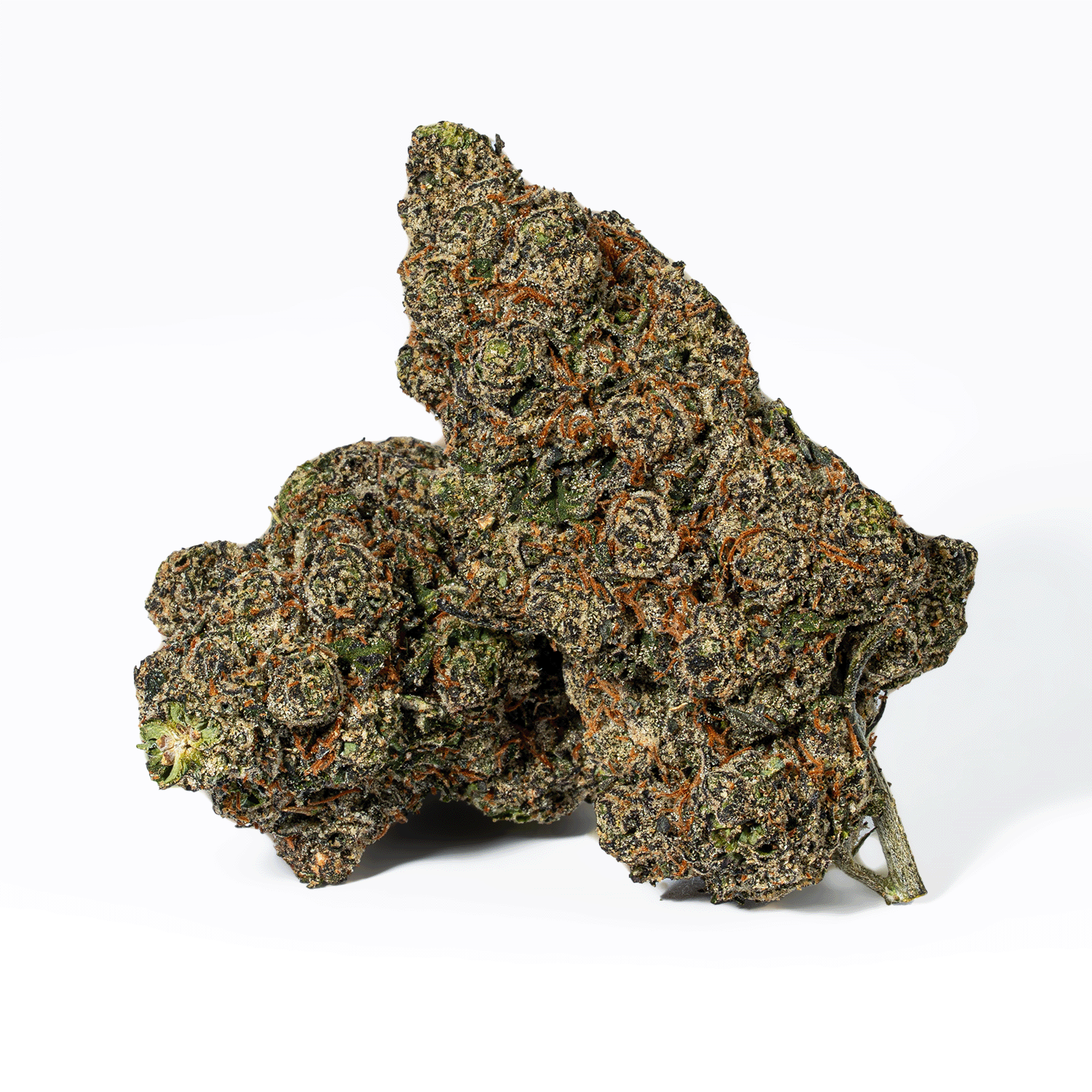 Named for its gorgeous appearance and tropical flavor, Sunset Runtz is the perfect bud for any indica lover who wants a great taste with their medicine. This bud has a sweet and sour tropical citrus flavor with hints of sharp lemon and spicy herbs to it, too. The aroma is very similar, with a spicy tropical citrus overtone accented by sour herbs and fresh earthiness. The Sunset Runtz high hits you almost as soon as you exhale, immediately launching the mind into a high-flying cerebral state of pure happiness and ease. You’ll feel creative and sociable in this state, easily carrying on conversations with those around you. At the same time, a soothing body high will wash over your physical form, leaving you feeling fully relaxed and at ease from head to toe, and slightly sedated at times. In combination with its high 28-29% average THC level and 0-1% CBD level, these effects give Sunset Runtz an edge in treating those suffering from conditions such as chronic pain, depression, nausea or appetite loss and chronic stress or anxiety. This bud has spade-shaped super dark olive green, almost black, nugs with dark purple undertones, orange hairs and a coating of frosty clear crystal trichomes.