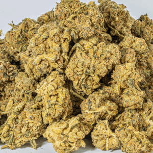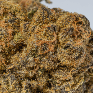 English farmers created this strain by inbreeding Skunk #1, a sativa-dominant hybrid. UK Cheese itself is indica-dominant, with a sativa/indica ratio of 20:80, but the effects are balanced, delivering both a head and body high. It’s a potent strain, with THC levels topping out at about 21%, and it’s known to hit fast and hard. The effects are intensely euphoric, with an upbeat, happy mood, some laziness, and a dose of creativity. Best used to treat pain and stress, UK Cheese is also an effective way to alleviate insomnia and depression. CBD levels are low, less than 1%, so this isn’t a good choice for patients with seizures or other disorders that respond to CBD. Cottonmouth and dry eyes are common side effects, and paranoia, headaches, and dizziness are also reported. Fittingly, this strain smells and tastes like cheese, with a pungent earthy aroma.